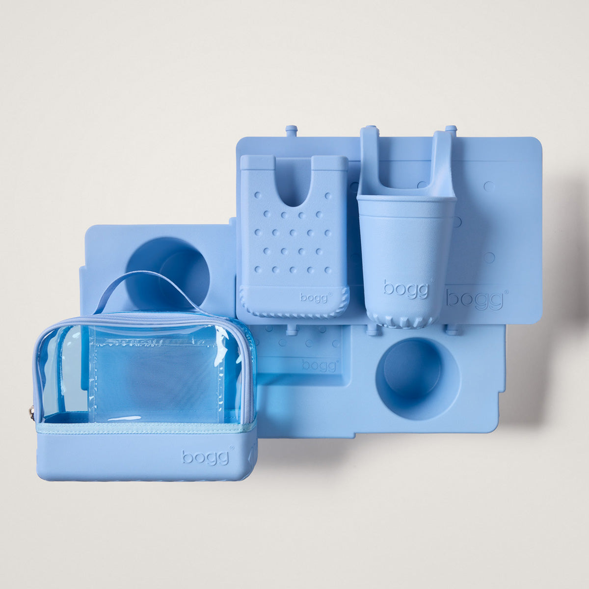 Everything you need for our largest tote (not including the tote); one beverage holder, one phone holder, one organizer pouch, one divider and one food & beverage topper.